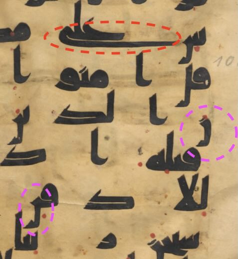 (Arabic Nun letter in kufic texts actually looks exactly same as the tear mark in the second picture. This is a isolated or final leter. There is no isolated letter that looks like “⅃”. But the one that looks like “L” is most common isolated letter. This looks like right tear mark. And the Nun letter looks like left. There is one more letter clearly linked. Kef Letter ‘ك’. The link is more apperant on hijazi script for this one.)