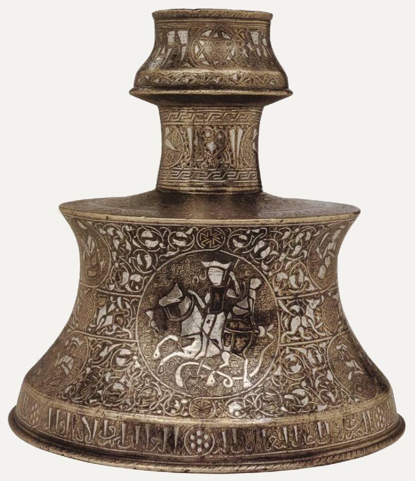 (Feeline shaped incense burner - Mounted hunter with cheetah, Dish with cheetah on horse)