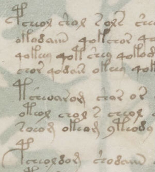 Another crazy thing is that I published that the word "crypt" originates from phoenician letter alpha because it looks like an eyelash (kirpik in Turkish). And blinking is from same root kırp-. For instance “blinked” is “kırp+tı”. Well, One of the most common variant of this Alpha letter from Voynich Manuscript looks like an eye closed. It is also probably important to point out that “Crypt” starts with “Cry”. And it is a crypted text. The legs of this Alpha letter corresponds to tears marks of a cheetah. Kinda sounds like too much of a coincidence.