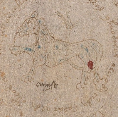 There is an animal depiction that is possibly a cheetah (*) but there aren't anything like tear marks under its eyes and its head is kinda weird. Weirdist part is its tongue which looks very sharp. In Turkish tongue is “dil”. It also a verb for splitting. Also there is a red splash on its back which looks like random. The color red not usually referred by it but in Turkish “Al” means red for some readon. Like Turkish flag is called “Al Bayrak” (Red Flag). I independently from this suggest Turkish word for cheetah is actually constructed as “Al+Pars+lan”. These are kinda nice coincidences but it is not really possible to go anywhere with. If this animal is actually a cheetah. This actually makes me reconsider whether the stuff with Alpha like letter was intended. Although it doesn't change the fact that coincidences kinda pile up. Around the chin of head of cheetah drawn weirdly. Kinda confusing. According to the article the depiction it is being part of relates to month of August. (Well, this one is probably clear based on astrology signs. Although it seems like normally August is not associated with cheetahs. But this August is not reallly surprising.)